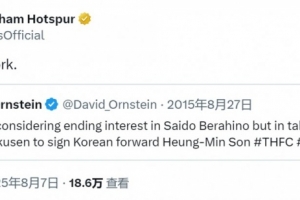 知名記者David Ornstein在2015年夏窗社媒發(fā)文,透露熱刺正在商談引進(jìn)勒沃庫森前鋒孫興慜,不過當(dāng)時一些球迷并不看好這筆簽約。