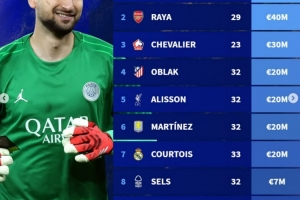 體育資訊8月7日訊 2025年雅辛獎10人候選名單公布,以下為10人德轉身價榜: