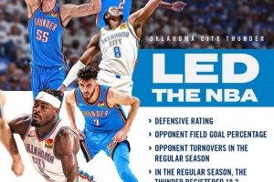 體育資訊8月8日訊 今天,雷霆在官推上曬圖回顧了球隊上賽季的一些防守數(shù)據(jù)。