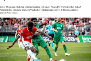 波庫目前效力于阿爾克馬爾,兩家俱樂部已經(jīng)就轉(zhuǎn)會事宜達(dá)成一致,球員只需通過體檢就可加盟。這名21歲的邊鋒將和勒沃庫森簽約至2030年,轉(zhuǎn)會費(fèi)約為1000萬歐。