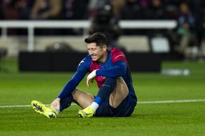巴薩俱樂部在官方公告中謹慎表示,這位波蘭前鋒將缺席甘伯杯比賽,且恢復(fù)情況將決定其后續(xù)比賽能否上場。然而據(jù)《阿斯報》獲悉,目前預(yù)估球員將傷停數(shù)周,不排除要到九月中旬國際比賽日后才能復(fù)出。