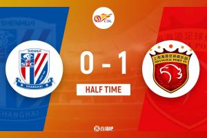 傷停補(bǔ)時(shí)8分鐘。上半場(chǎng)比賽結(jié)束,上海申花0-1上海海港。