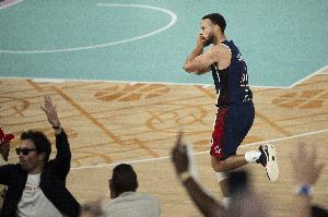 那場(chǎng)比賽最后時(shí)刻成為庫(kù)里的個(gè)人表演時(shí)間,最后法國(guó)一度迫近到3分分差,庫(kù)里連進(jìn)4個(gè)三分,殺死比賽懸念,送全場(chǎng)晚安!