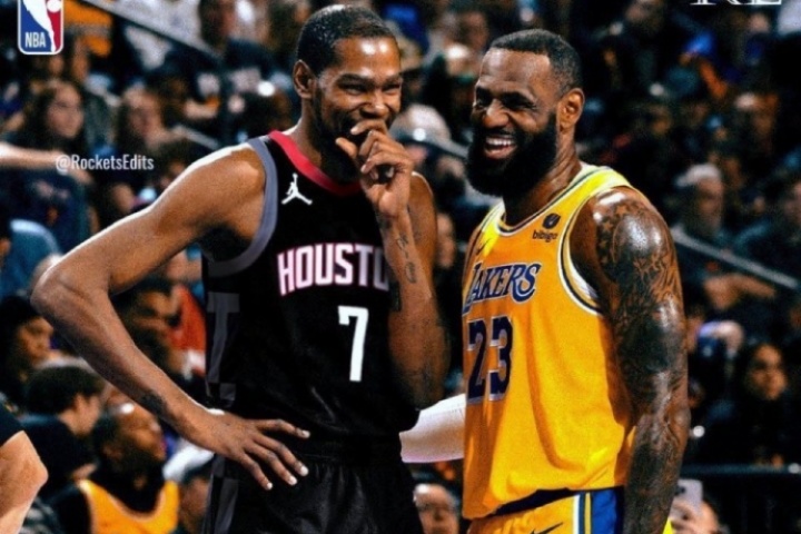 火箭媒體人Bradeaux曬出了火箭前鋒凱文-杜蘭特與湖人前鋒勒布朗-詹姆斯的合成照,配文:“你想不到比這更好的圣誕大戰(zhàn)了?!?/p>