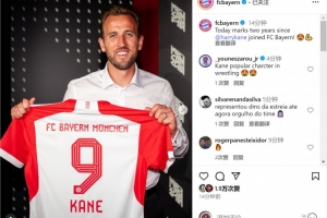 2023年8月12日,凱恩以9500萬歐轉(zhuǎn)會(huì)費(fèi)從熱刺加盟拜仁。拜仁官方社媒曬出凱恩加盟時(shí)的照片,回顧那個(gè)特別的時(shí)刻。