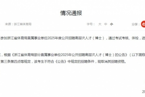 近日,曾某參加浙江省體育局直屬事業(yè)單位2025年度公開(kāi)招聘高層次人才(博士),通過(guò)考試考核、體檢,進(jìn)入考察環(huán)節(jié)。