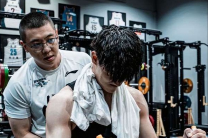 曾凡博繼續(xù)進行背部康復訓練,為月底前往布魯克林做準備。圖中他在北京與TT運動表現(xiàn)體能館的長期訓練師段然在一塊。他預(yù)計會為10月10日和12日在中國澳門舉行的NBA中國賽做好準備。