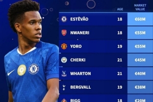 埃斯特旺(切爾西),18歲,6000萬歐元