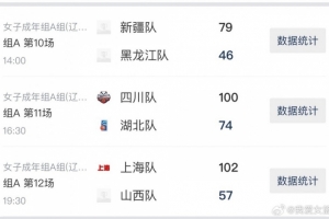 四川隊100-74湖北隊,李緣獨得21分5助攻,高頌18分4籃板,劉禹彤14分6籃板,唐子婷12分。湖北隊劉貝狂砍26分,彭華倩15分7籃板。
