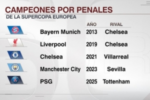據(jù)ESPN統(tǒng)計(jì),巴黎是歐超杯歷史第5支通過(guò)點(diǎn)球大戰(zhàn)奪冠的球隊(duì),此前4支是拜仁(2013)、利物浦(2019)、切爾西(2021)和曼城(2023)。