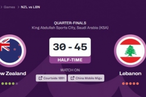 體育資訊8月15日訊 男籃亞洲杯1/4決賽,新西蘭隊上半場30-45落后黎巴嫩隊。