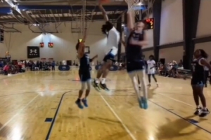 朱正曬出自己在比賽中隔扣對(duì)手的視頻,配文寫道:“17+7 加上這個(gè)隔扣,讓這些打UAA的小伙伴知道誰(shuí)從U19男籃世界杯回來。”
