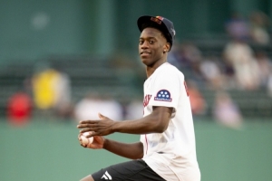 體育資訊7月12日訊 波士頓紅襪隊官方曬圖:AJ-迪班薩為球隊的比賽開球。