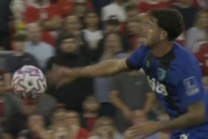 體育資訊08月16日訊 利物浦vs伯恩茅斯第14分鐘,利物浦反擊,塞內(nèi)西有主動用手拍球的動作!這球裁判沒有判!
