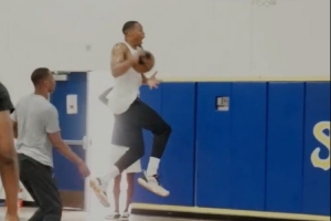 體育資訊8月16日訊 今日威少更新IG動態(tài)轉(zhuǎn)發(fā)了一段自己的訓練視頻,視頻中威少秀出穩(wěn)定手感、扣籃、傳球,視頻最后他完成搶斷后還來了一個高難度拉桿。
