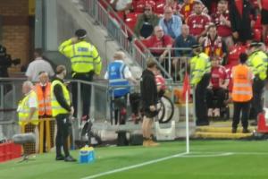 但球場中的警察行動非常迅速,有球迷拍到,這位輪椅球迷很快被要求離場,他在眾人的注視下灰溜溜的被志愿者推出通道。