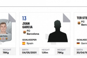 由于特爾施特根的傷病,霍安-加西亞已經(jīng)順利在西甲完成了注冊(cè),他的球衣號(hào)也已經(jīng)確定為是13號(hào),而此前身穿13號(hào)的佩尼亞則改穿1號(hào)。