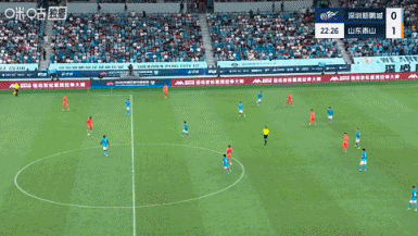 比賽第23分鐘,謝文能精準(zhǔn)傳中,卡扎伊什維利頭球破門,場(chǎng)上比分深圳新鵬城0-2山東泰山。