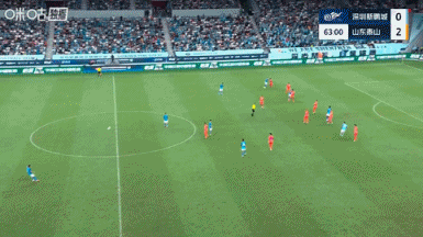 比賽第64分鐘,韋斯利助攻列昂索破門,場上比分深圳新鵬城1-2山東泰山。