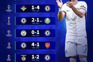 體育資訊7月12日訊 世俱杯決賽將在巴黎與切爾西之間展開,德轉(zhuǎn)也盤點了切爾西近6次國際杯賽決賽的全勝表現(xiàn)(不包括歐洲超級杯):