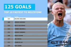 據(jù)媒體統(tǒng)計(jì),哈蘭德加盟曼城以來出戰(zhàn)147場(chǎng)比賽,打進(jìn)125球,成為曼城歷史上最快達(dá)成125球的球員,比第二快的阿圭羅少用42場(chǎng)比賽。