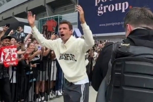 今夏加盟溫哥華白浪的穆勒此役將擔(dān)任替補(bǔ),俱樂部社媒曬出他抵達(dá)球場(chǎng)的視頻,這位德國(guó)傳奇球星受到球迷的熱烈歡迎。