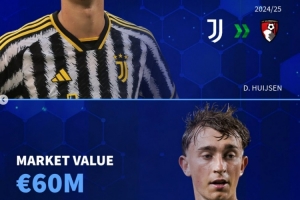 24/25賽季尤文1963萬歐出售至伯恩茅斯,現身價6000萬歐
