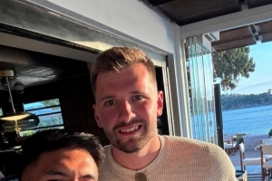 體育資訊7月13日訊 菲律賓球員基弗-拉維納曬出了在希臘雅典和湖人球員東契奇和八村塁合影的照片。從照片中可以看出,這個休賽期東契奇的體型保持的不錯。