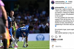 賽后,埃斯特旺更新社媒向球迷致謝,并曬照紀(jì)念自己英超首秀。