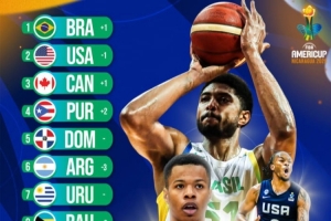 體育資訊8月20日訊 今天,男籃美洲杯官方公布了新一期的美洲杯實(shí)力榜,巴西男籃升至第一,美國男籃降至第二。具體如下(括號(hào)內(nèi)為相比上一期的升降名次):