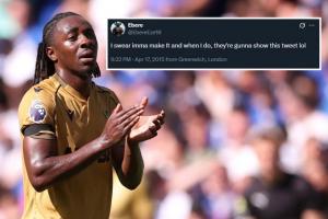 太陽(yáng)報(bào)表示,16歲的埃澤當(dāng)時(shí)剛剛被米爾沃爾解約,在2015年4月他發(fā)布了這條社媒:我發(fā)誓我一定會(huì)成功的,等我成功了,他們肯定會(huì)把這條推文找出來(lái)的,哈哈。
