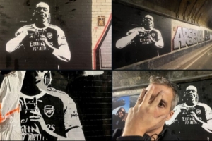 阿森納街頭藝術(shù)賬號(hào)Northbanksy更新社媒,發(fā)布了新創(chuàng)作的壁畫,埃澤身穿阿森納球衣。