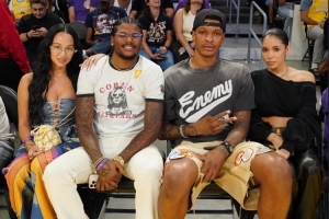 體育資訊8月22日訊 昨日太陽球員、火箭舊將杰倫-格林攜40歲的女友Draya與前隊友小賈巴里-史密斯及其女友一同場邊觀戰(zhàn)WNBA飛翼VS火花的比賽。今日火箭隊記Bradeaux發(fā)文談到這張合照。