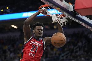鵜鶘替補席上還有一名身高2米18的中鋒亨特-迪金森,他大學(xué)期間效力于密歇根大學(xué)和堪薩斯大學(xué),在2025年選秀大會上落選后,與鵜鶘G聯(lián)盟球隊簽下了一份雙向合同。大學(xué)5年他共出戰(zhàn)161場比賽,場均30.8分鐘,可以得到17.4分9.2籃板1.8助攻1.5蓋帽,投籃命中率55.5%,三分命中率33.9%,罰球命中率72.9%。他曾兩次入選全美二陣,一次入選全美三陣。