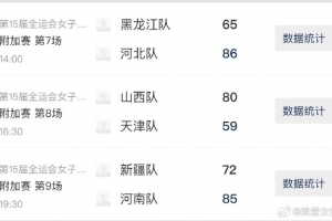 今天全運會女籃成年組附加賽繼續(xù)在安徽合肥進行,其中山西拿下天津,成為最后一支晉級決賽圈的球隊。這樣附加賽全部結(jié)束,河南、新疆、山西成功晉級全運會女籃決賽圈。