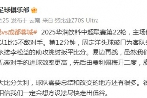 體育資訊8月23日訊 在中超聯(lián)賽第22輪中,云南玉昆主場1-5負(fù)于成都蓉城。由于球隊(duì)連續(xù)的大比分輸球,云南玉昆俱樂部也在賽后公開致歉。