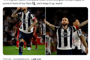 拉莫斯社媒曬出比賽照片,配文:“感覺(jué)真棒!在一場(chǎng)精彩的比賽中全取三分——榜首、零封和進(jìn)球,在我們的球迷面前破門(mén)總是很開(kāi)心,讓我們繼續(xù)加油!”