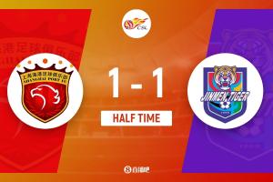 上半場(chǎng)傷停補(bǔ)時(shí)3分鐘,半場(chǎng)結(jié)束,上海海港暫1-1天津津門虎。