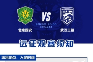8月25日,武漢三鎮(zhèn)將在2025中超聯(lián)賽第22輪中客場對陣北京國安。即將與各位遠征軍在看臺上相見,期待我們的戰(zhàn)斗時刻!