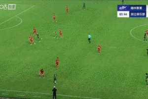 比賽第86分鐘,卡列洛下底傳中,郭全博撲救脫手后疑似出現(xiàn)傷情,門前程進在防守球員的干擾下背朝球門,嘗試腳后跟攻門遺憾偏出!