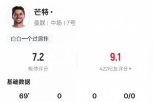 體育資訊8月25日訊 2025-26賽季英超第2輪,曼聯(lián)客場1-1富勒姆。芒特先發(fā)出戰(zhàn),送出2次關(guān)鍵傳球,還有2次搶斷,6次地面對抗4次成功,評分7.2。