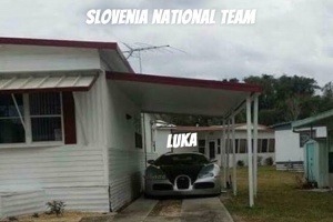 自媒體Luka Updates曬圖為歐錦賽預(yù)熱。圖中是一個破敗的小院中停著一輛豪車。豪車上面標注著“Luka”,而這個小院則被標注為斯洛文尼亞男籃。