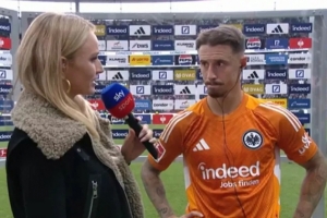 此前不萊梅在德甲慘敗法蘭克福,不萊梅隊(duì)長(zhǎng)馬爾科-弗里德?tīng)栐谫惡笈c對(duì)手換了球衣,隨后在場(chǎng)邊接受了卡塔琳娜的采訪。