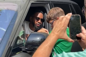 巴坎布與球迷互動時被問到是否會留在貝蒂斯,他說道:“我不能說?!?/p>