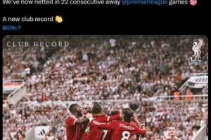 利物浦官方寫道:“我們已經(jīng)連續(xù)第22場在英超客場比賽中取得進(jìn)球,創(chuàng)下了俱樂部新紀(jì)錄!”