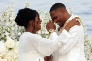 從現(xiàn)場(chǎng)的照片可以看到,威少流下了激動(dòng)的淚水,妮娜則身著一件華麗的白色長(zhǎng)裙,并佩戴了一枚鉆石戒指。