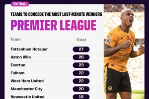 體育資訊8月27日訊 在英超歷史上,有一些球隊(duì)經(jīng)常會(huì)成為最后一分鐘被絕殺的背景板。OPTA盤點(diǎn)了英超歷史最后一分鐘被絕殺次數(shù)最多球隊(duì)top10,熱刺27次居首。