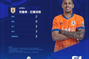 中超聯(lián)賽第22輪比賽中,山東泰山主場迎戰(zhàn)青島西海岸。上半場第8分鐘,克雷桑在禁區(qū)內(nèi)推射破門首開記錄。下半場第49分鐘,克雷桑主罰任意球直接破門,幫助球隊擴(kuò)大比分??死咨M瓿擅烽_二度,幫助山東泰山3-2險勝對手。