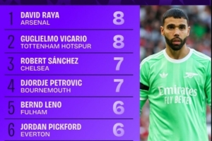 體育資訊8月28日訊 本賽季英超已經(jīng)進(jìn)行兩輪比賽,阿森納的拉亞和熱刺的維卡里奧以8次并列撲救榜榜首,而且兩人把守的球門(mén)迄今為止還未丟球。