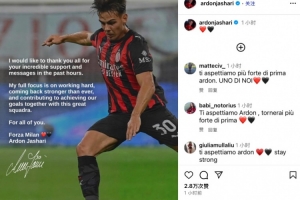 在傷情官宣后,亞沙里通過(guò)社媒發(fā)文,他寫(xiě)道: